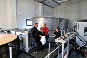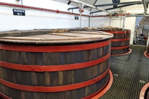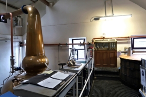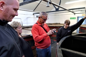 Lorraine – so hieß unsere Guide – empfing uns im Kiln Room, dort wo mit einem Torffeuer der rauchige Geschmack in die Gerste gebracht wird. Sie erzählte recht lebendig von der winzig kleinen Distillery, die wir hier besuchen. Dass wir eine persönliche Führung bekommen werden, haben wir spätestens jetzt gemerkt. Wir stellten uns gegenseitig vor und sie ermutigte uns, jederzeit Fragen zu stellen und viele Bilder zu machen. Sie ließ uns viel Zeit, das, was sie erzählt, ins Deutsche zu übersetzen. Wir fühlten uns sofort wohl mit ihr.