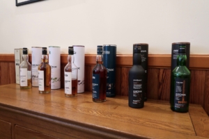 Und natürlich bekommen wir am Ende dieser besonderen Führung eine Verkostung. Und auch hier überrascht uns Lorraine noch einmal ganz gewaltig. Wir durften alles – wirklich ALLES – probieren. Sie hätte uns alles eingeschenkt, wenn wir darum gebeten hätten. Der arme JAN nippt nur kurz an der rauchigsten Version und nimmt den Rest in kleinen Probefläschchen mit. Da blieb unsere Guide hart, die als erstes fragte, wer der Fahrer von uns ist. Aber ich, Mama & Papa trinken uns fleißig durchs Angebot. Natürlich sind wir nicht unverschämt und belassen es bei vier Proben. Immerhin ists noch nicht mal Mittag 🙂 Drei wundervolle Flaschen kaufen wir direkt vor Ort. Der Vergleich mit online-Angeboten hält stand und wir müssen uns bremsen, denn wir sind ja mit dem Flieger da und müssen aufs Gewicht achten (*mist!) Unfassbar seelig und glücklich verlassen wir Lorraine, nicht ohne eine Abschiedsfoto mit ihr gemeinsam.