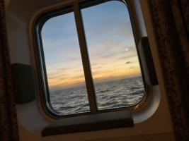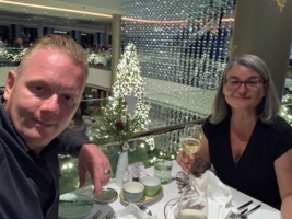 Und dann müssen wir uns sogar ein wenig beeilen. Denn anders als sonst, gibt es heute feste Tischzeiten, im Gegenteil, wir mussten sogar weit im Voraus – schon im Oktober – diesen Tisch reservieren. Das haben wir damals auch artig gemacht. Also flink in die Kabine, nochmal der Sonne hinterhergewunken, in Schale geworfen und ab zum großen Weihnachts-Dinner.