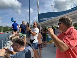 Wir drehen eine kleine Runde, haben dadurch viele Möglichkeiten, Fotos zu machen und fahren die ganze Strecke an der Küste wieder retour. Zwei Stunden Fahrt vor uns, die wir mit Rumpunsch, lokalem Bier und lauter karibischer Musik verbracht haben. Trotzdem waren wir froh, als wir dann endlich wieder von Bord gehen konnten.