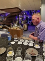 So werden wir heute ein zweites Mal enttäuscht. Aaaaber, es lag definitiv weder am Whisky noch am Kollegen, der sich wirklich sehr bemühte. Es lag an der Location. Wir saßen mit 10 Leuten direkt vor der Essenausgabe im “Esszimmer”. Um die Ecken gleich die Toiletten. Dementsprechend stark frequentiert war der Platz, dazu kam noch die extreme Geräuschkulisse, die so eine Livecooking-Station mit sich bringt, inklusive laute Bestellungen des Personals. Leider habe ich den Namen vergessen, aber er versuchte wirklich alles, diese schlechte Location mit dem “Genuss” des Whiskys in Einklang zu bringen – kurz: es gelang ihm nicht. Das tut mr unfassbar leid. Denn das Tasting an einem anderen Ort auf diesem doch eigentlich riesigen Schiff – und wir hätten den Abend in vollen Zügen genossen.