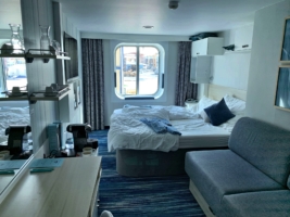 Die Kabine muss bis 9 Uhr frei sein, gepackt hatten wir ja schon, das Schiff sollte man (wenn man selbst an-/abreist) bis spätestens 11 Uhr verlassen haben. Wir gehen nochmal ein Käffchen trinken, aber wenn man weiß, dass man ab jetzt nur noch “geduldet” ist, fühlt man sich nicht mehr so super wohl. So nehmen wir einen allerallerallerletzten Schoppen an unserer TUI-Bar, schnappen unser Zeugs und checken aus.