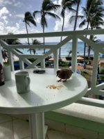 Wow, sind diese drei Wochen wirklich schon rum? Wie die Zeit verfliegt, wenn man sie mit dem Richtigen verbringt und dabei das Richtige tut. Wir trinken einen schönen Kaffee unten in der kleinen Bar mit Blick auf die karibische See und realisieren, dass wir wirklich in ein paar Stunden schon wieder daheim sein werden.