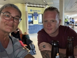Unser Zimmer muss bis 10 Uhr geräumt sein. Also, los gehts, Koffer packen, immer wieder umräumen, ausräumen, neu wiegen, feststellen, dass wir definitiv zu viele Klamotten dabei hatten. Aber unser selbstgemachter Gin von der Kreuzfahrt und die Flasche Whisky von Bonaire müssen zusätzlich noch irgendwie in den Koffer und vorher stoßsicher verpackt werden! Irgendwann ist es geschafft. Alle drei Gepäckstücke haben je ein Kilo zu viel auf den Rippen, hoffentlich drückt man ein Äuglein zu am Check-in.