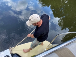 Wir machen auf dem Stolpsee einen ausgedehnten Badestopp, genießen die Ruhe und die Landschaft. die Schnitzer angeln bzw. versuchen es. Dieser Urlaub funktioniert ausschließlich nach dem Prinzip: