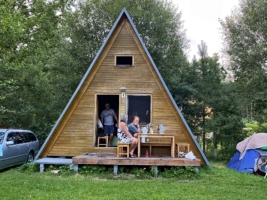Wir sind satt und Mama Schnitz zurück (es sind wohl doch die Ohren) und wir können endlich in unsere Hütte einziehen. Nunja – auf den Bildern ganz nett – entpuppt sich diese Übernachtungsstätte als eher nicht so schön. Die Hütten bräuchten tatsächlich mal ein komplettes Make-over. Alles ist verschlissen, teilweise sogar kaputt und vom vorherigen Gast dreckig hinterlassen. Wir machen das Beste daraus, pumpen zwei große Matratzen auf, es ist ja nur für die eine Nacht. Zur Toilette bzw. den Waschräumen ists ein Fußmarsch über den ganzen Platz, aber das sind wir ja schon von anderen Campingurlauben gewöhnt. Die kleinen Schnitze wollen uuuuunbedingt baden und so ziehen wir zum Badestrand, verbringen dort fast den ganzen Nachmittag, futtern Pizza, bevor wir zurück in der Hütte noch lange draußen sitzen und würfeln. Morgen gehts an die Ostsee!