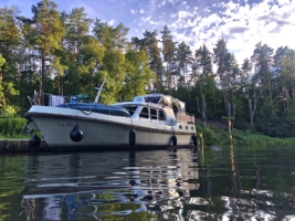 Der Heimathafen Fürstenberg liegt am beschaulichen Röblinsee, welchen wir heute hinter uns lassen wollen. Wir hatten zwar im Vorfeld versucht, eine Route auszuarbeiten, aber sehr schnell beschlossen, es am Ende einfach auf uns zukommen zu lassen. Und so starten wir heute, einem Tipp des Hafenmeisters folgend, in die entgegengesetzte Richtung, wie irgendwann mal geplant. Heute ist Samstag und viele berlinerische Wochenendausflügler sind unterwegs. So ist sein Tipp, entgegen zu fahren. Danke – machen wir!