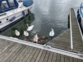 Und das ist auch gut so. Jede Anstehzeit nutzen wir, um zu Essen, zu Packen, aufzuräumen usw. Den Vogel schießt eine Schleuse ab, wo wir erst auf dem See in einer riesenlangen Schlange anstehen, bevor wir in den Kanal einfahren dürfen, wo man ja auch noch einmal steht. Unfassbar. Anstehschlange auf einem offenen See und immer den “Platz” verteidigen, denn einige Bootsführer raffen es nicht und schieben sich dazwischen. Der Ton wurde schon mal etwas rauher da draußen. Zu ihrer Verteidigung muss man aber sagen, dass es aussah, als ob wir alle ankern würden … :)) Armer Papa Schnitz, der über zwei Stunden lang unser Boot an einer Stelle halten musste – ohne Anker dafür aber mit Wind!