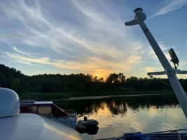 Egal, wohin es uns treibt. Alles ist total spannend und interessant. Selbst die unfreiwillige Nacht in der Warteschlange zur Schleuse, welche früher als angezeigt den Dienst für heute eingestellt hat. Egal, wir haben doch alles an Bord. Wir legen an und grillen uns was Leckeres. Beobachten Libellen, Eisvögel und allerlei anderes Getier. Unsere Angler fangen einen Aal, der aber wieder in die Freiheit entlassen wird. Selbst die Mücken, vor denen wir im Vorfeld so viel Angst hatten, gibt es so gut wie gar nicht. Rundum – wir sind glücklich!